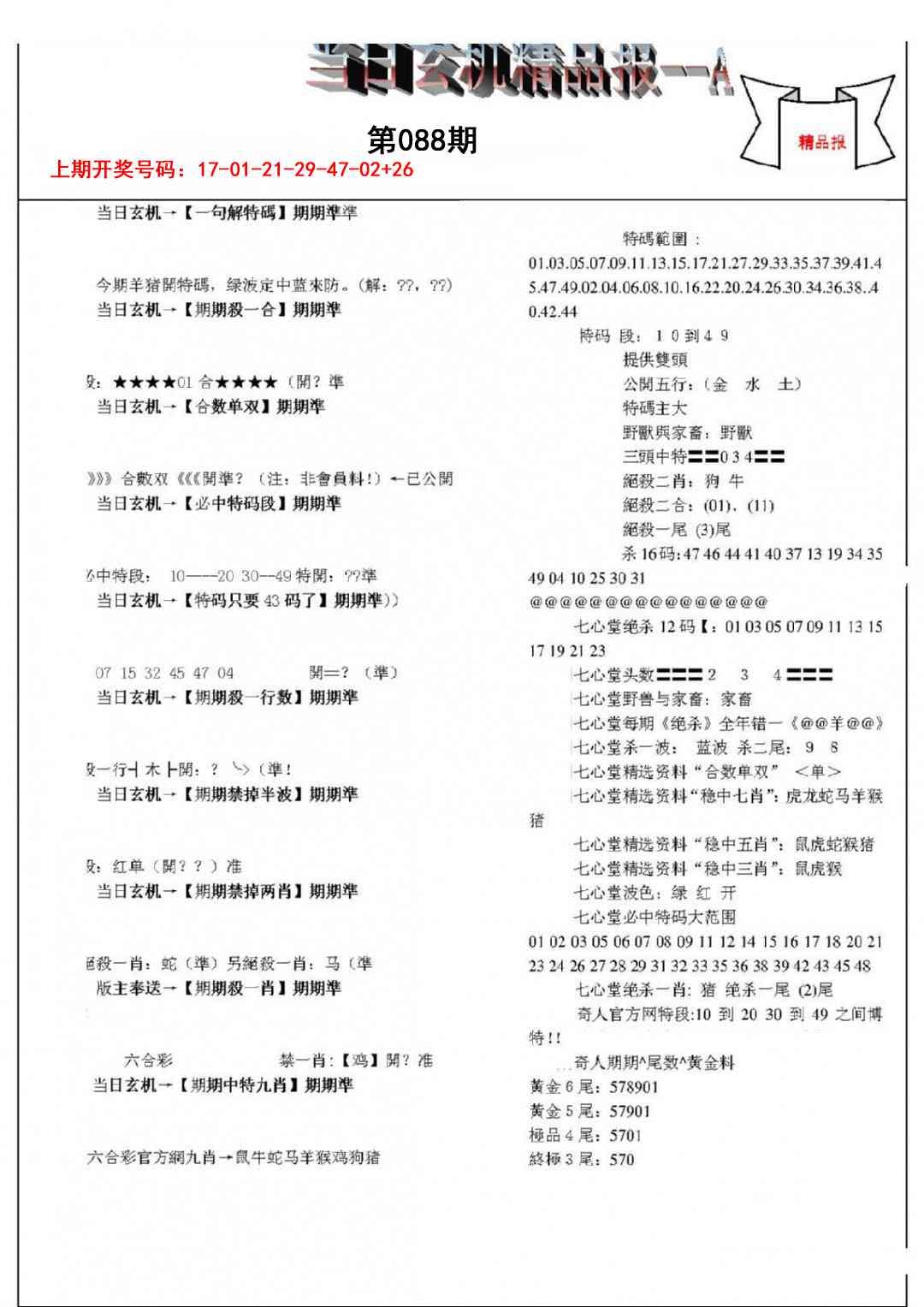 当日玄机精品报A